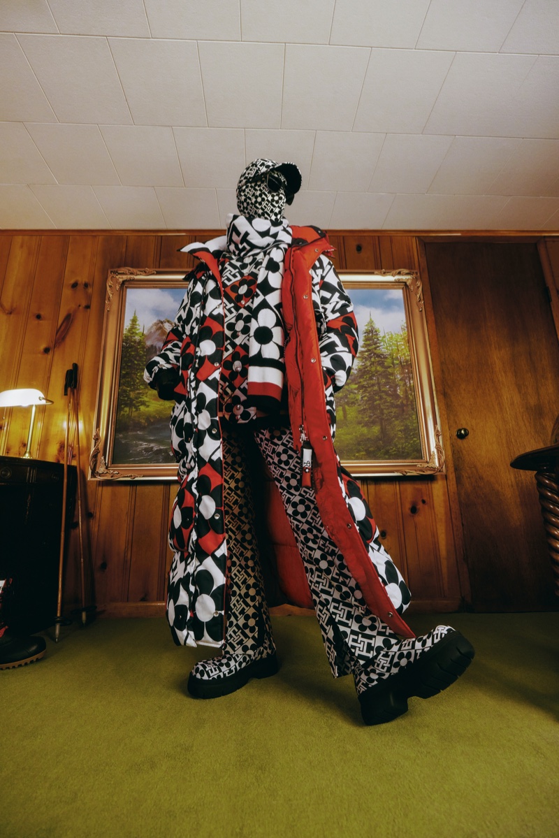 “Tommy and I share the same obsession for prints and textiles, so it was a natural joy to balance and combine our visions for this collaboration,” shares Richard Quinn. “It was inspiring to dive into Tommy’s archives and find the iconic pieces that became the canvases for our co-creation. We pushed ourselves to be dramatic and vibrant with every detail — in the pursuit of progress — and the final pieces do not disappoint.”
