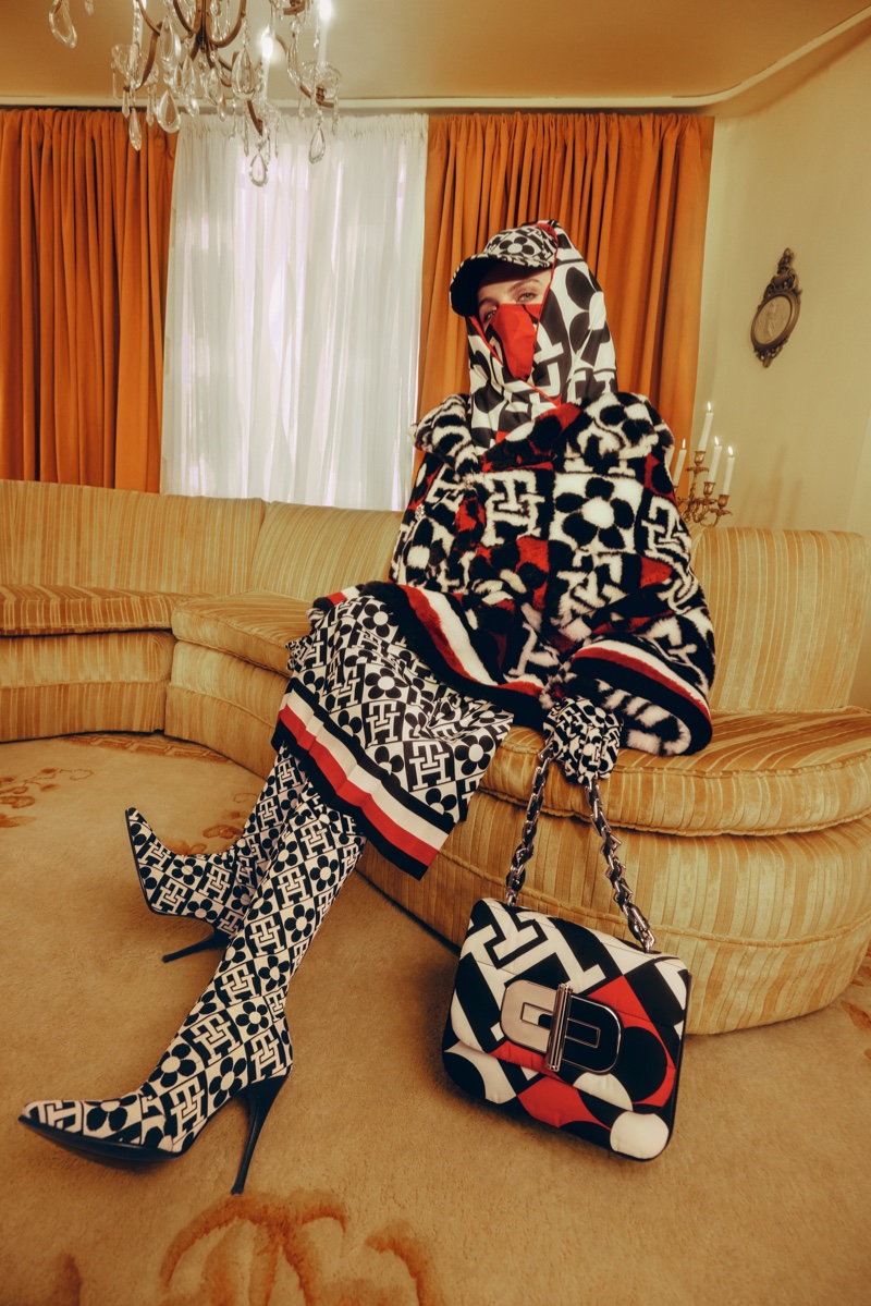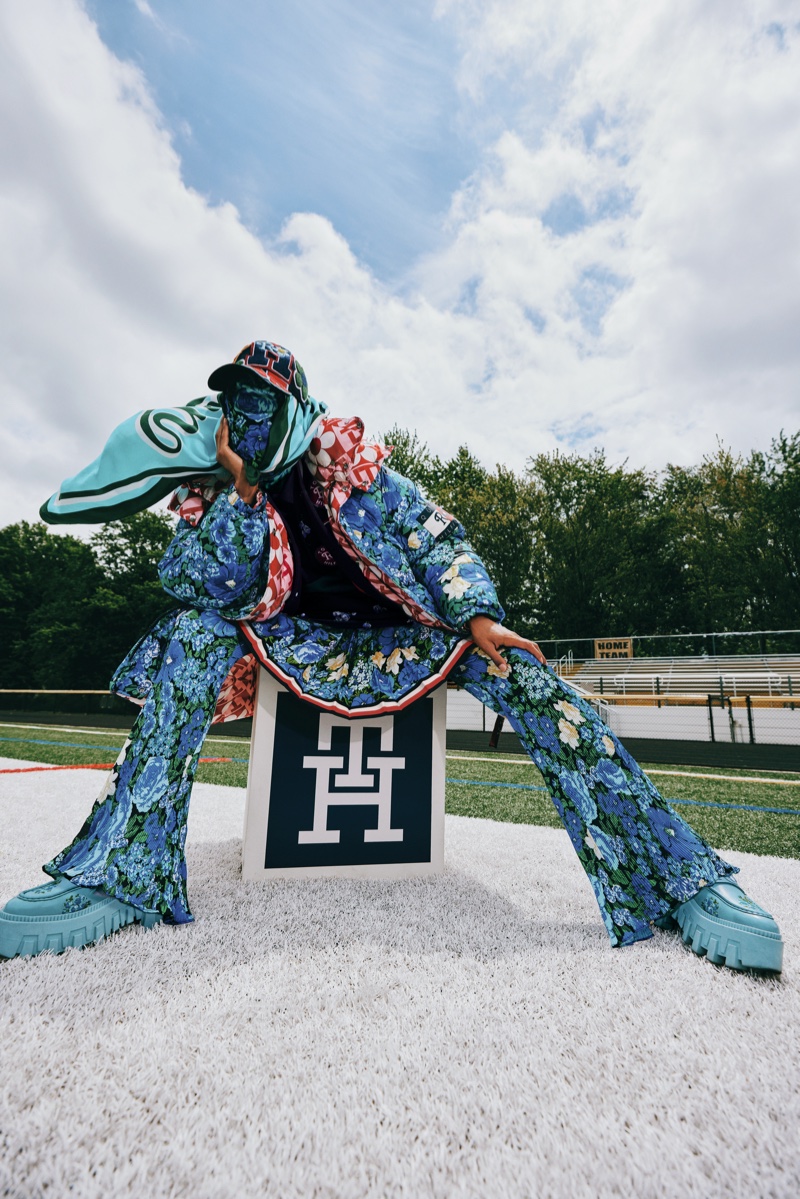 A gender-inclusive capsule collection features pieces such as printed varsity jackets, leather jackets, pea coats, 5-pocket jeans, chinos, boots, silk scarves, and more. The collaboration is a wonderful combination of Quinn’s daring take on prints and Hilfiger’s classic Americana preppy style.