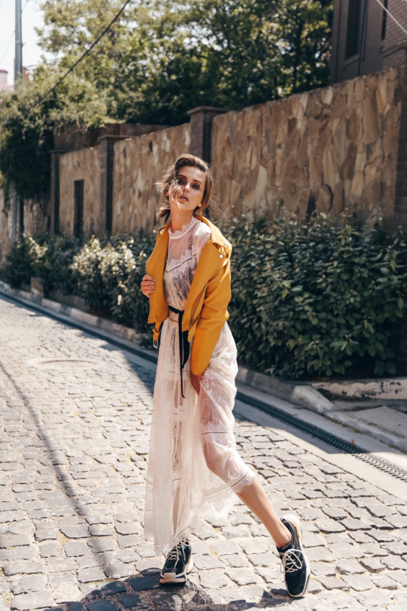 The next point logically assumable is using accent colors and items (shoes, accessories, jewelry, etc.). It is the most characteristic of modern trends because otherwise, it would be difficult to imagine a woman in an airy dress and military-like boots. It makes people rethink old fashion phenomena like small floral prints or apply new materials to classic looks.